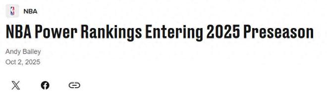 范乔丹重伤火箭队仍排第4名!在季前赛开打之际,美媒《bleacherreport》公布出新赛季首期实力榜,其中低价签下3大新援的湖人队高居第5,终于压哨补强的勇士队第9名。