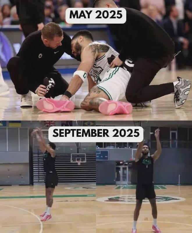 开个玩笑,无论如何凯尔特人的0号球衣都只属于塔图姆,而且据名记Fischer报道,这哥们很有可能明年三月份复出,他的跟腱伤病恢复速度超乎想象,甚至已经开始球场训练。